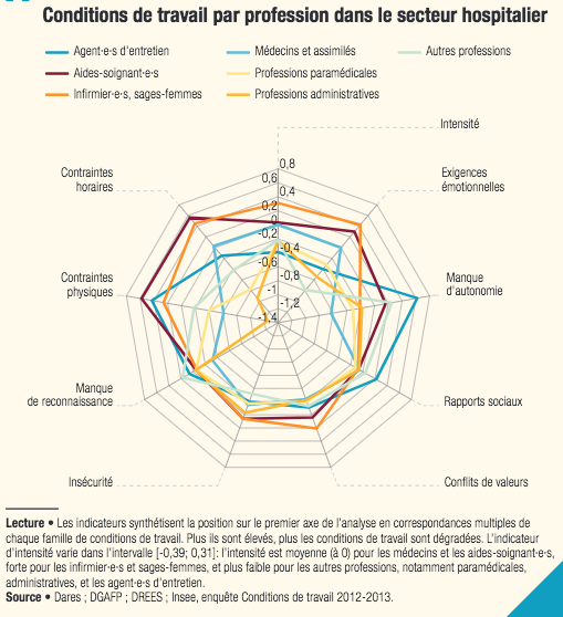 - Arrêts maladie dans le secteur hospitalier : les conditions de travail expliquent les écarts entre professions, Catherine Pollak et Layla Ricroch, 2017, Études et Résultats, n°1038, à télécharger sur Drees, novembre 2017.