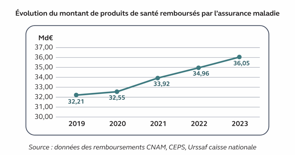 Les produits de santé, entendus comme les médicaments et dispositifs médicaux à usage individuel, sont prescrits et dispensés aux patients afin d’établir un diagnostic ou les soigner. En 2023, près de 15 000 références de médicaments étaient prises en charge par l’assurance maladie. Les dispositifs médicaux, eux, constituent un vaste ensemble de produits très hétérogènes comprenant par exemple les pansements, les fauteuils roulants et les seringues.
