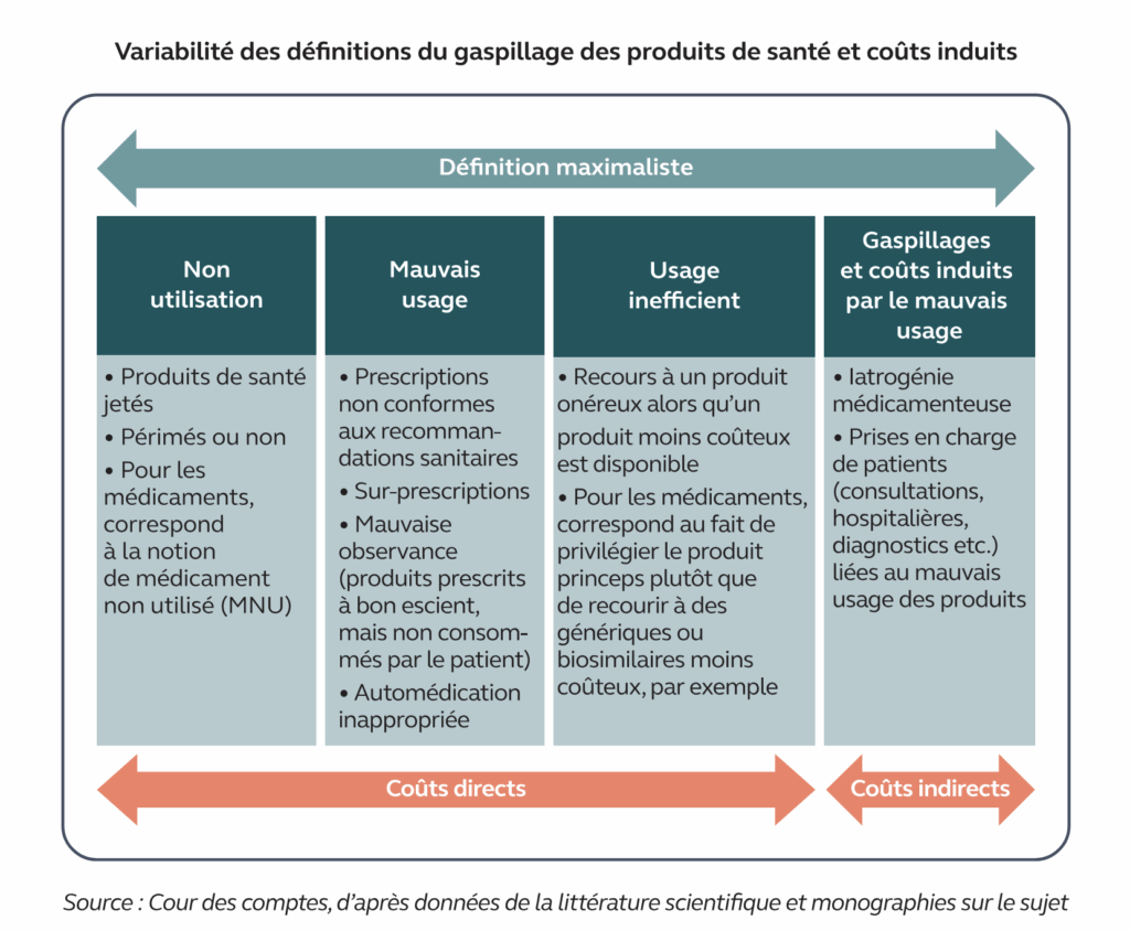 - La première est celle de l’utilisation effective des produits de santé et correspond aux produits prescrits, dispensés et remboursés, mais détruits sans être utilisés.