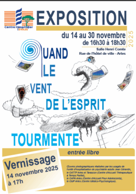Le Centre Hospitalier d’Arles présente, du 14 au 30 novembre prochain, l’exposition « Quand le vent de l’esprit tourmente » ; une invitation à changer le regard sur la santé mentale et à découvrir l’humain dans toute sa sensibilité.