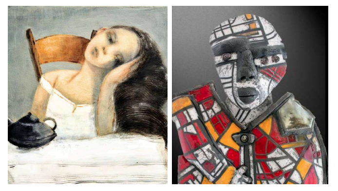Vous y découvrirez le travail pictural de Christine Muller, artiste bien connue des lecteurs de Santé mentale car elle a illustré plusieurs de dossiers de la revue. Elle utilise la peinture pour interroger la lumière et la mémoire, donnant ainsi forme à des fragments intimes. A ses côtés, Dominique Allain, qui, à travers la sculpture et la technique du raku (1), fait apparaître les marques du temps et de l’épreuve sur la matière. Le dialogue entre les œuvres révèle une poésie silencieuse, une sensibilité partagée face à l’invisible. Ensemble, leurs œuvres nous invitent à percevoir les liens discrets qui traversent nos vies.