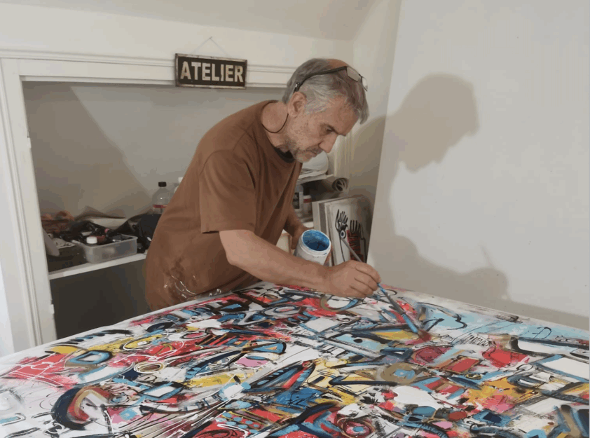 Dans sa pratique, la création reste « une porte ouverte sur un monde plus grand, plus coloré, où les possibles n’ont de limite que l’imagination qui leur est donnée ». En s’exprimant à larges coups de pinceau, affranchi des conventions, l’artiste privilégie l’émotion et la spontanéité : « Je n’ai pas les mots, alors je peins ».