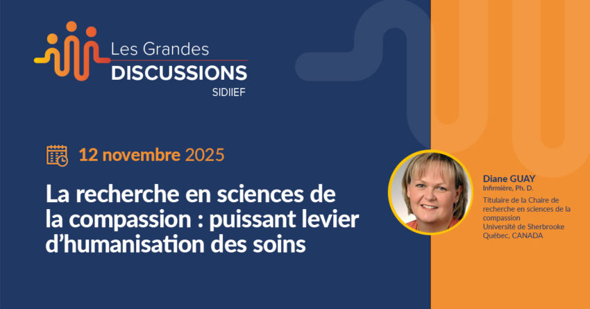 • Ce webinaire aura lieu en direct et en ligne le mercredi 12 novembre 2025, de 11h30 à 12h30 (UTC-5) – Quelle heure sera-t-il dans mon fuseau horaire? Il sera animé par Diane Guay, infirmière, Ph. D.Titulaire de la Chaire de recherche en sciences de la compassion, Université de Sherbrooke, Québec, Canada.