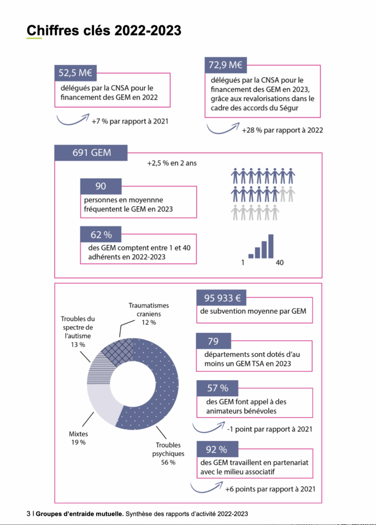• Rapport d’activité thématique Octobre 2025 Groupes d’entraide mutuelle Synthèse des rapports d’activité 2022-2023, CNSA, octobre 2025. (PDF)