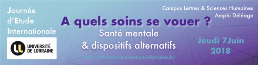 Nous proposons de poursuivre et d’élargir les thématiques préalablement abordées : quelles places et quelles fonctions pour le pluralisme thérapeutique en santé mentale en France ? Ces réflexions s’inscrivent également dans le cadre du projet ALTERMENTAL sur les « Parcours de soins des patients-usagers de santé mentale entre dispositifs conventionnels et alternatifs en Lorraine » soutenu par le CPER-Ariane.
