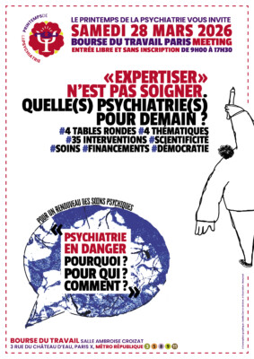 La journée sera une étape dans la construction d’un dialogue avec les premier.e.s concerné.e.s. Ce meeting mettra en avant récits, témoignages et discours argumentés pour encourager le débat, soutenir le combat contre la FondaMentalisation du soin psychique et amorcer le renouveau d’une psychiatrie de proximité humaine et relationnelle.