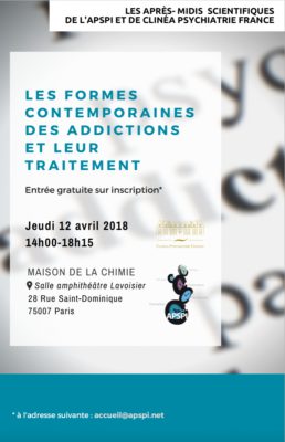 L’Association de Promotion des Soins Psychiques en Institutions (A.P.S.P.I.) et Clinéa Psychiatrie France propose un après-midi scientifique (14h00 à 18h15) suivie d’une conférence grand public à 19h