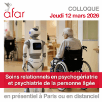 Colloque proposé par l’AFAR Une personne âgée n’existe pas toute seule. La relation sous la forme d’aide relationnelle ou de soins relationnels est aussi essentielle …