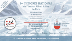 1er Congrès national de l’Institut Alfred Adler de Paris (IAAP) En se basant sur la méthodologie biopsychosociale (parmi d’autres) d’Alfred Adler, ce Congrès souhaite créer un …