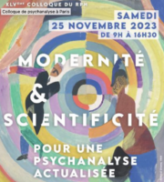 Pour une psychanalyse actualiséeXLVe Colloque du Réseau pour la psychanalyse à l’hôpital (RPH) Si la rigueur méthodologique signe la scientificité d’une discipline, la modernité l’inscrit …
