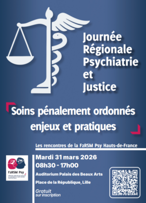 Journée régionale psychiatrie et justice organisée par Fédération régionale de recherche en psychiatrie et santé mentale Hauts-de-France (F2RSM Psy) le 31 mars prochain, à l’auditorium du Palais des Beaux-Arts de Lille.