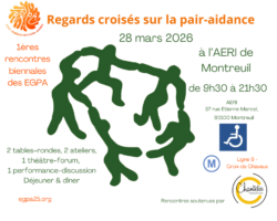1eres Rencontres des états-généraux de la pair-aidance EGPA Les 1ères rencontres des EGPA proposent « CROISER les REGARDS sur la PAIR-AIDANCE » entre des intervenant.e.s pairs-aidant.e.s (bénévoles …