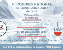 1er Congrès national de l’Institut Alfred Adler de Paris (IAAP) En se basant sur la méthodologie biopsychosociale (parmi d’autres) d’Alfred Adler, ce Congrès souhaite créer un …
